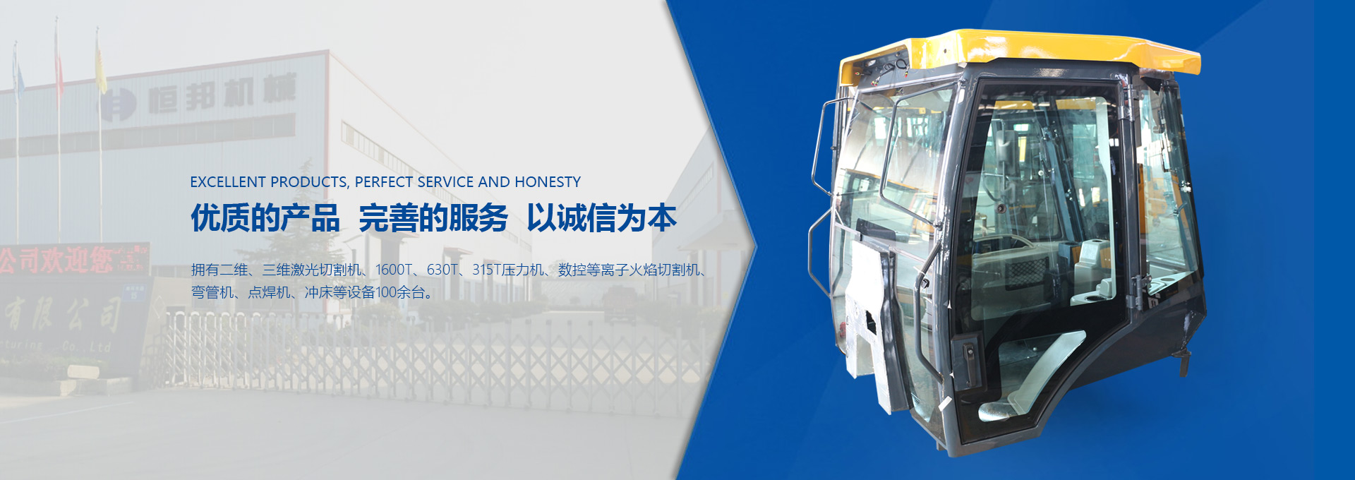 揚(yáng)州市恒邦機(jī)械制造有限公司位于風(fēng)景秀麗的揚(yáng)州市江都區(qū)丁伙工業(yè)園區(qū)。瀕臨長江,緊靠京滬高速、啟揚(yáng)高速,地理?xiàng)l件優(yōu)越,交通營運(yùn)便利。我公司集多年模具開發(fā)和鈑金制造經(jīng)驗(yàn),自2009年起,專注生產(chǎn)工程機(jī)械駕駛室、配重塊、覆蓋件和特種駕駛室。研發(fā)設(shè)計(jì)技術(shù)人員30名,員工300名。現(xiàn)代化生產(chǎn)車間20000平米。...